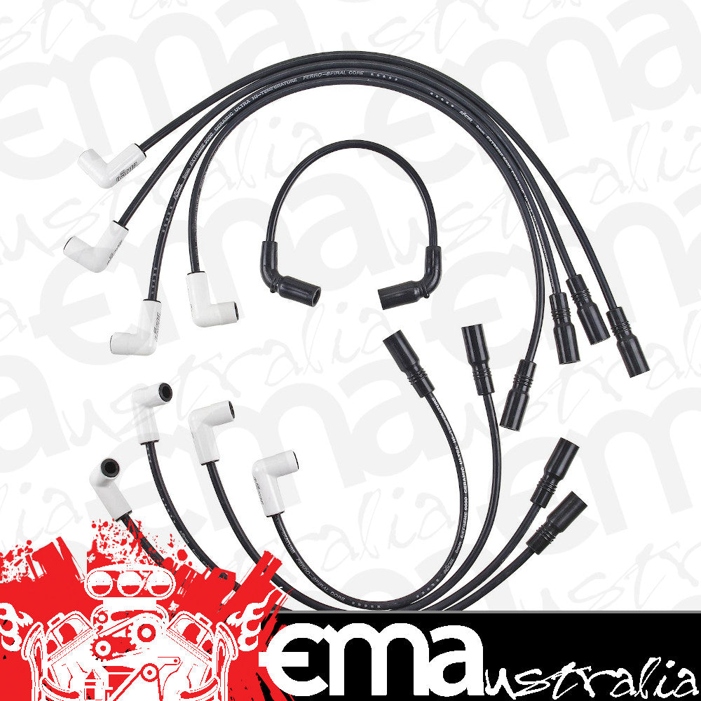 ACCEL Extreme 9000 Ceramic wires are the cure for burnt spark plug boots. Each wire is constructed of 8mm ultra-high temperature double silicone wire rated at 600°F that houses Ferro-Spiral core wire developed for performance use. The wires are finished with stainless steel spark plug terminals and ceramic spark plug boots that can withstand up to 2,000°F. ACCEL Extreme 9000 wires provide excellent energy delivery while providing the highest level of RFI/EMI suppression. ACCEL Extreme 9000 ceramic spark plug wire sets are ideal for custom engines, boats, and RVs and are great trackside accessories for when you need to make up a replacement wire.
