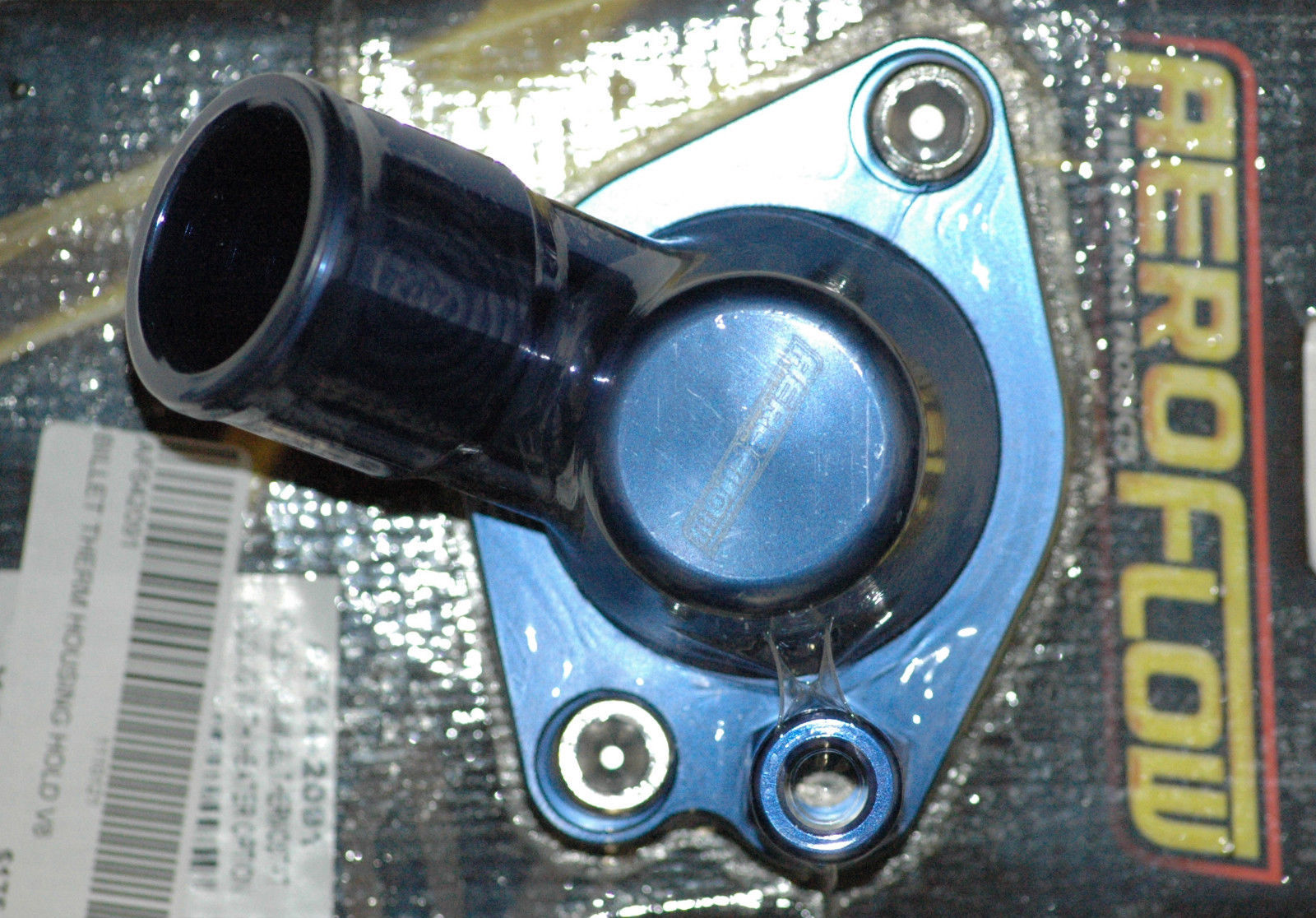 AEROFLOW BLUE 45° BILLET SWIVEL THERMOSTAT HOUSING HOLDEN 253-308CID AF64-2091