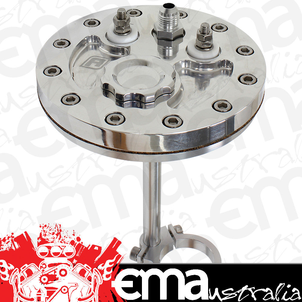 Now you can upgrade your fuel delivery system when converting over from carby to efi with this billet single fuel pump hanger from aeroflow performance. The billet hanger has a built in fuel cap and has the ability to mount one AF49-1041, AF49-1042 or any 40mm (1-37/64") diameter fuel pumps. CNC machined from billet 6061-T6 aluminium with black anodized option for maximum durability and corrosion protection e85/methanol.