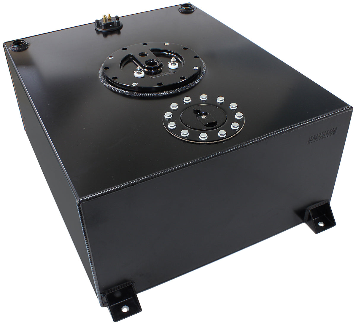 Aeroflow now offer the 76L ( 20 US gallons ) fuel tank already fitted with our triple pump which is perfect for high horsepower and high fuel applications. The hanger works with 1,2 or 3 40mm (1-37/64") fuel pumps such as our AF49-1041, AF49-1042 or AF49-1057 and is internally baffled to eliminate fuel surge. PTFE in tank hose is included. Flat bottom tank. Length 510mm (20-1/16") x Width 620mm (24-3/8") x Height 260mm (10-1/4") 0-90 ohm Fuel Level Sender Included.