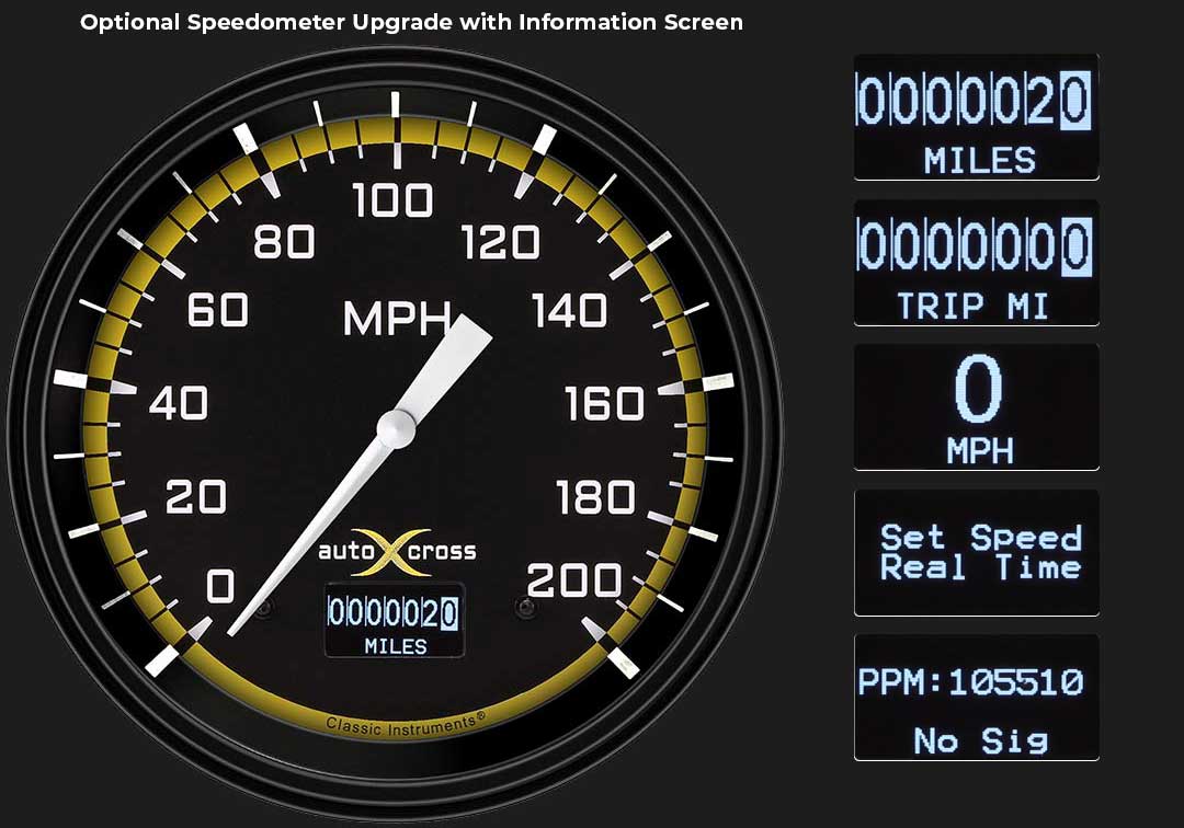Classic Instruments are considered special order items. While we stock a variety of samples, most kits are custom orders with personalized options. The average lead time for these orders is 2-6 weeks. Customizations include options such as KPH, Celsius, pointer colors, flat or curved glass, custom bezels, and more. The possibilities are endless!