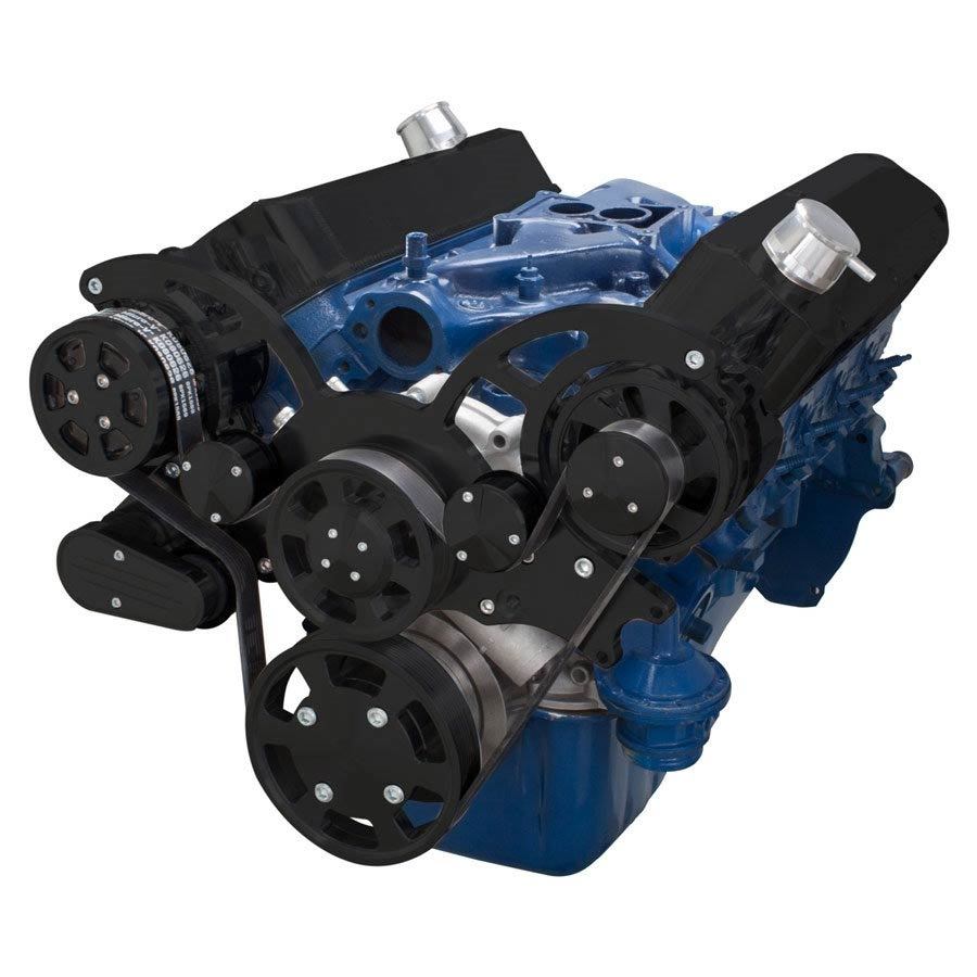 Black Small Block Ford 289, 302 & 351W Engine Serpentine Conversion Kit Air Conditioning and Alternator