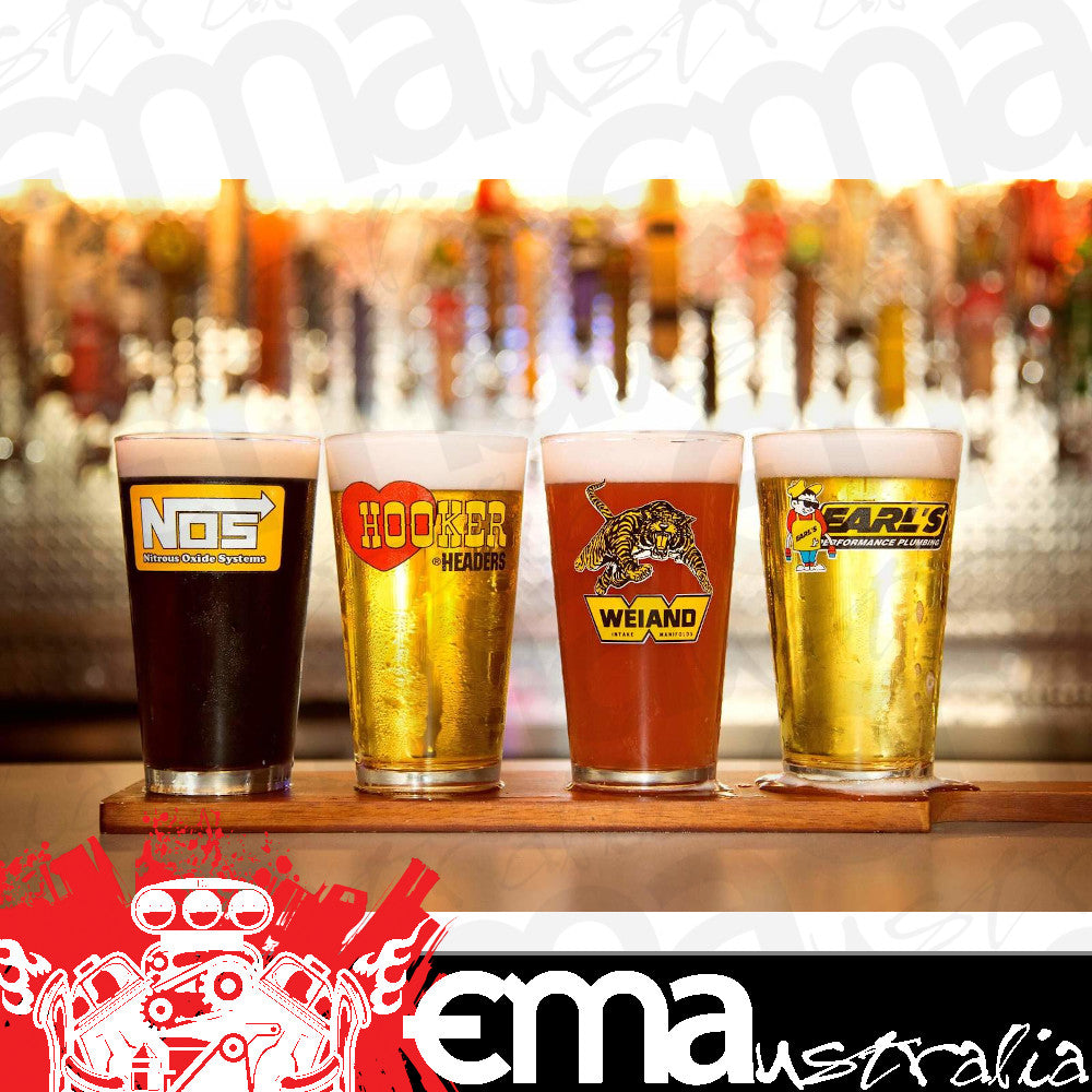 Holley HO36-441 16oz (473ml) Pub Glass Assortment - Hooker, NOS, Earl's & Weiand