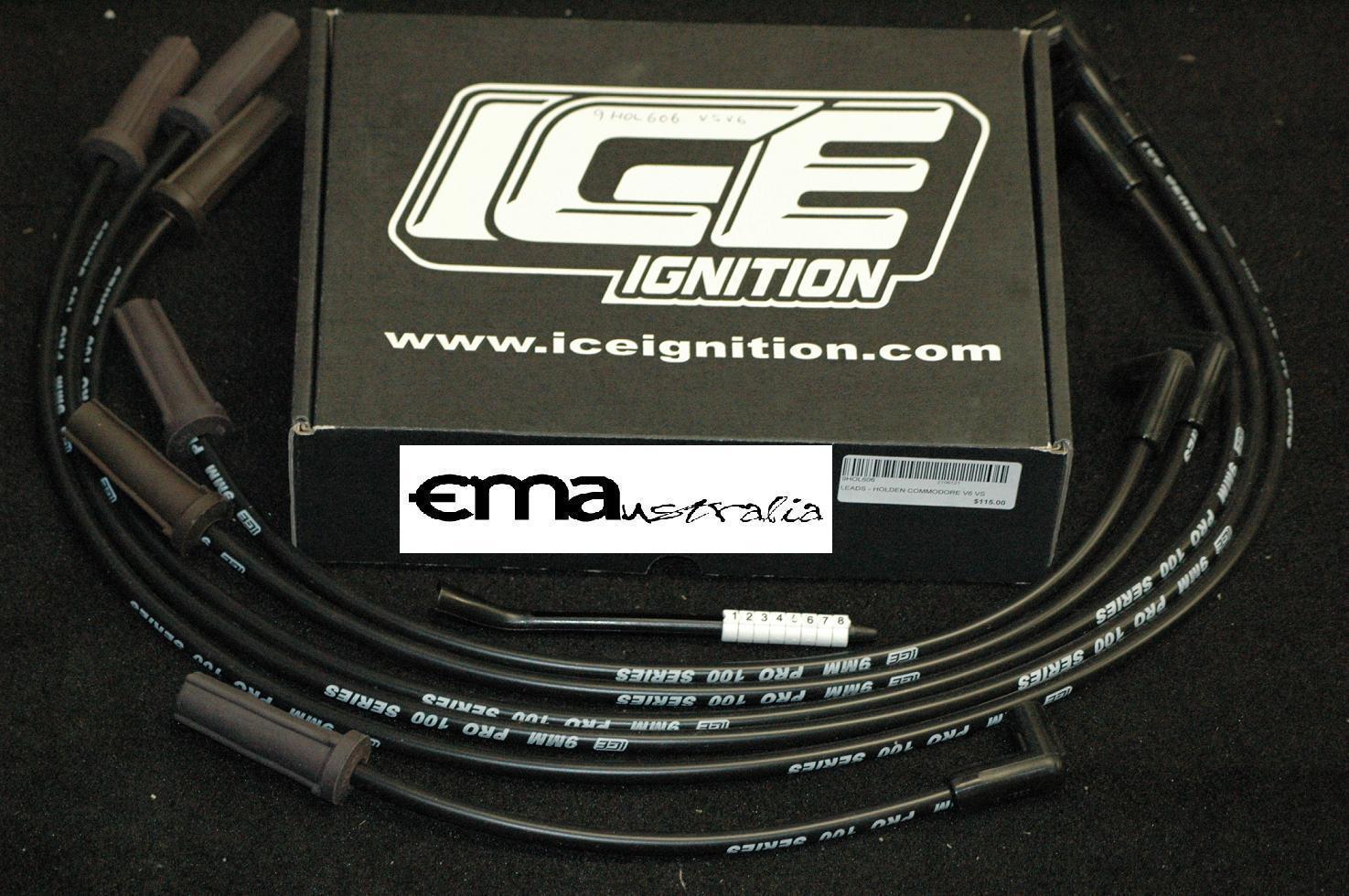 ICE IGNITION 9MM LEADS HOLDEN COMMODORE VS-VT SERIES I 3.8L V6 9HOL606 ICE plug wires are manufactured using the highest quality low resistance spiral wound copper alloy core and stainless steel "Snap Lock" cap and plug fittings. Extreme temperature silicone insulation and boots are used. The ultimate 9mm Pro 100 Series wires are used in all ICE ignition kits and have an extremely low resistance of just 100 ohms per metre for maximum spark intensity and duration.9 mm Pro 100 Series plug wire sets feature: