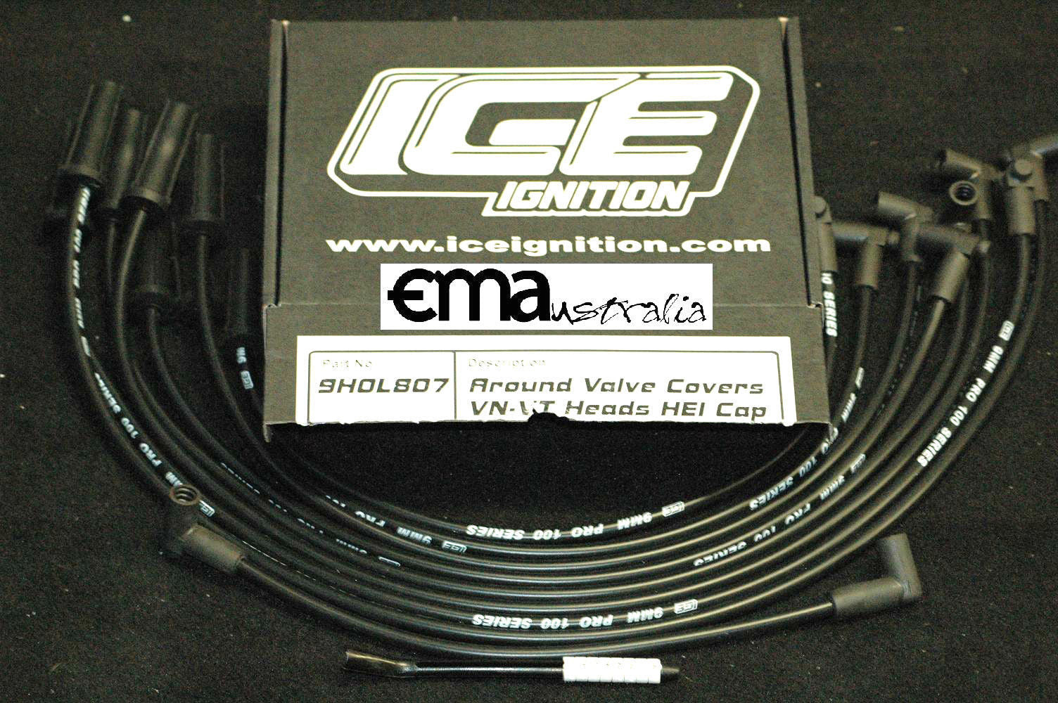ICE IGNITION 9MM LEADS HOLDEN COMMODORE VN-VT V8 180° PLUG 90° HEI DIZZY 9HOL807 ICE plug wires are manufactured using the highest quality low resistance spiral wound copper alloy core and stainless steel "Snap Lock" cap and plug fittings. Extreme temperature silicone insulation and boots are used. The ultimate 9mm Pro 100 Series wires are used in all ICE ignition kits and have an extremely low resistance of just 100 ohms per metre for maximum spark intensity and duration.9 mm Pro 100 Series plug wire sets feature: