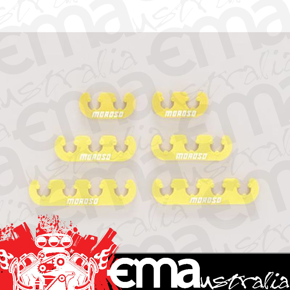 MOROSO SPARK PLUG LEAD SEPARATORS YELLOW SUIT 7 - 9MM WIRES MO72162 These spark plug wire separators protect your plug wires from contacting hot engine components and prevent ignition crossover by holding them away from one another. These separators snap into place with slight pressure and can be used to route wires just about any way you can think of. The high temperature plastic separators securely grip the plug wires. Specs:Application: Universal 7-9mm Plug Wire Diameter Wire Separator Material: Plastic