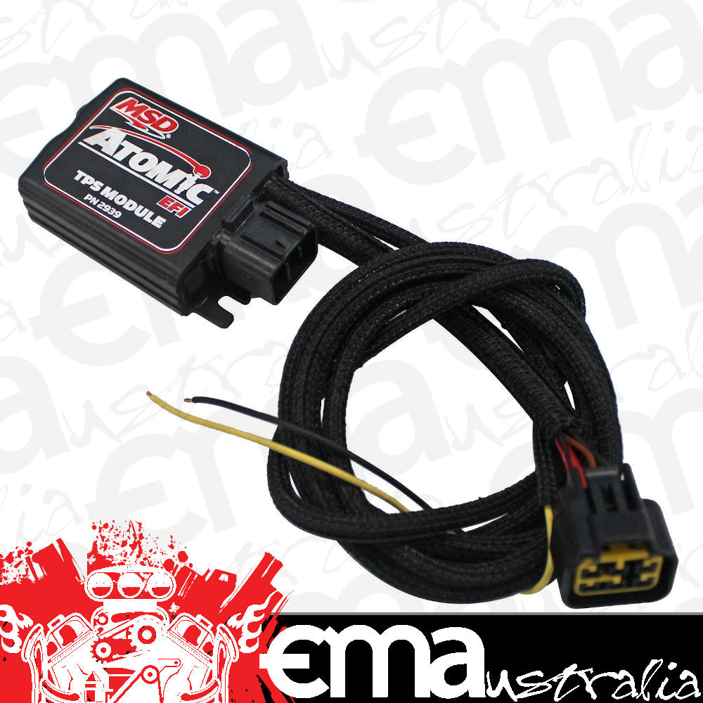 | MSD TPS SWITCH/MODULE MSD2939 SUIT MSD ATOMIC TBI MSD Atomic TBI throttle position sensor modules are designed for use with the MSD Atomic throttle body fuel injection system. They connect inline to the Atomic TBI communication network and provide a common 0-5 V throttle position output signal required for the operation of an electronic overdrive transmission or other accessory.