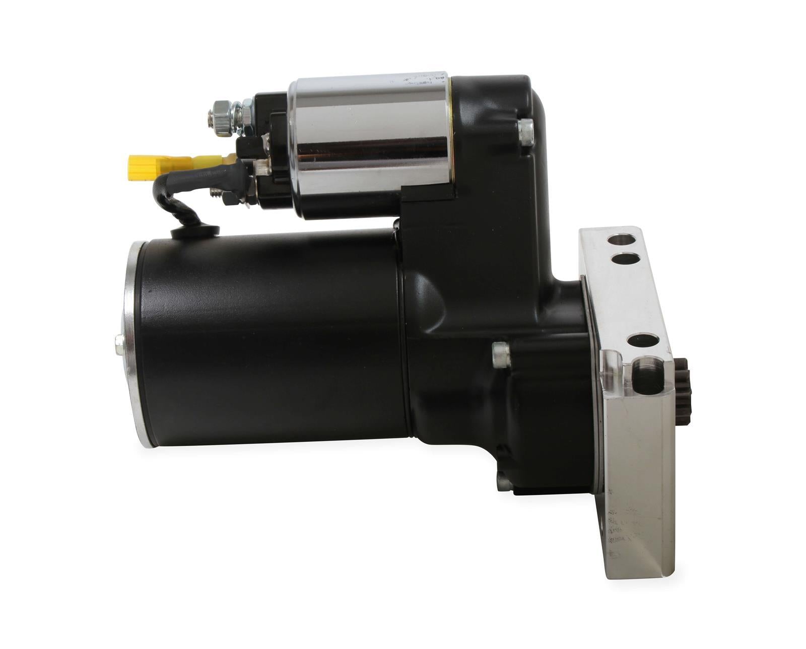 MSD DynaForce starters are built with all-new components and hand-assembled in the USA. For maximum performance and reliability, all starters are dyno-tested and blueprinted before they leave the factory. The armature is balanced during assembly and is guided by two ball bearings for smooth engagement during thousands of starts. MSD DynaForce starters feature a 3.4 hp motor—and a reduced 4.4:1 gear ratio delivers superior torque to start high-compression race engines up to an 18:1 ratio. They include a downsized housing that clears most headers and oil pans, and a billet aluminum mounting block that can be clocked in different positions for tighter clearance applications. These starters are available in a durable red or black powdercoat finish that's designed for maximum protection while looking good. They use a nickel plated, heavy-duty solenoid for optimum performance in severe environments.