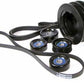 Powerbond's under drive balancer kit produces more horsepower by reducing parasitic power loss from driving engine accessories including alternator, power steering and air conditioning. Smaller diameter harmonic balancer reduces inertia for faster engine acceleration. The Powerbond SFI Race harmonic balancer is included for unbeatable strength and durability on the street or race track. This kit includes a full set of all metal NULINE heavy duty idler pulleys with high speed bearings. Premium performance poly V drive belts are included for quiet running and minimum belt slip.