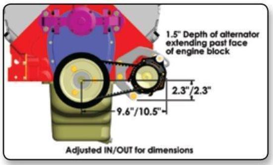 Solve low amperage problems with these easy-to-install Powermaster Drag Race alternator kits. Each kit includes a one-wire lightweight racing alternator, a hard-coated deep-groove alternator and crank pulley, bracket kit, and a belt. The black, high-heat transfer coating reduces alternator temperatures by 50 degrees F or more, thus prolonging their life and enhancing efficiency. Powermaster dyno-tests each alternator under various loads at variable speeds, and attached a tag with the performance data to each case. They come in your choice of low-mount kits for rail cars, or snug-mount kits for body cars.