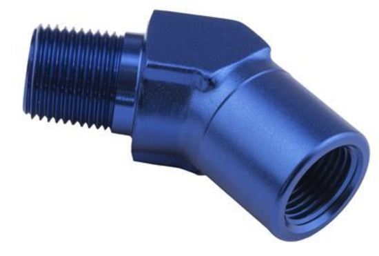 Proflow's 915 series fitting feature a forged 6061 T6 aluminium construction with a corrosion resistant double andodised finish. The 45 degree male NPT to female NPT provides maximum fluid flow and the AN 37 degree taper design means the fitting is totally re useable.