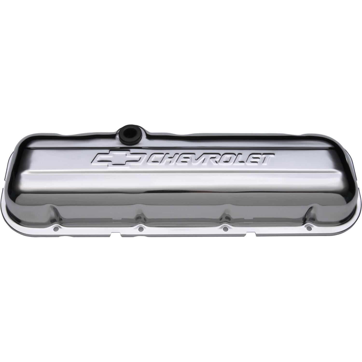 PROFORM STEEL VALVE COVERS PR141-114 CHROME WITH LOGO SUIT CHEV BB V8 These Proform stamped steel valve covers are made of heavy-gauge steel that is 20 percent thicker than typical aftermarket valve covers. This greatly reduces the likelihood of leakage around the valve cover flange area caused by fasteners being over-torqued. These covers are officially licensed GM products and bear the Chevrolet logo and Bowtie Emblem, unless otherwise specified. Oil-restricting baffles are offered in many valve covers, for those who want to maintain the PCV hookup, and all covers are supplied with air breather and PCV grommets.
