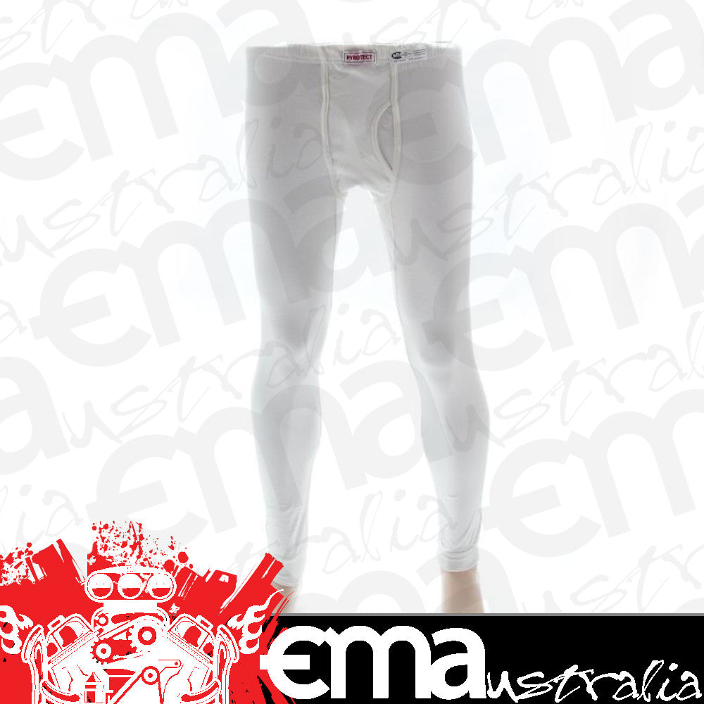 | PYROTECT SAFETY EQUIPMENT INNER WEAR BOTTOM PY4710500 X-LARGE SFI APPROVEDPyrotect's ultra thin inner wear is designed for use with any driving suit, and is as soft as cashmere and as absorbent as cotton! Features •SFI rated (SFI label attached) for use as underwear •Designed to be worn under Nomex underwear for added TPP protection •Absorbency keeps you cool and dry •No more scratchy, irritating Nomex next to the skinSpecs:Underwear Pant Type: Full length Underwear Pant Size: Men's X-Large Underwear Pant Color: White SFI Rated: Yes label attached Quantity: Sold individually. We also sell this part at our retail outlet, we do our best to keep stock quantities on our Ebay listing correct, but to avoid any disappointment, please be sure to contact us first to ensure it is in stock before pressing buy it now.