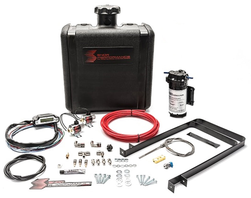 Snow Performance has combined performance, quality, and ease of installation in this new water-methanol injection kit designed for all turbo diesel owners who demand colder EGTs while towing heavy loads. The Diesel Stage 3 Boost Cooler utilizes a 2D mapped controller that commands injection based on boost pressure and EGTs (exhaust gas temperatures) to maintain extremely cold air inlet temperatures, 100-300 EGT decreases, decreased emissions, cleaner engine components, and increased fuel economy all while giving 65+ HP to help pull large hills with easy effort while towing. A must have for the diesel enthusiast that is concerned about the longevity of his truck that sees heavy towing. None invasive, the Diesel Stage 3 Boost Cooler controller is designed to mount on the steering column or the dash so no drilling/marring of the interior needs to take place or additional gauge pods need to be purchased. Functions as a boost gauge, water-meth controller and EGT monitor all in one! Concerned about warranty? The Snow Performance Stage 3 does not leave a signature on the vehicle leaving your diesel truck with its warranty intact. 7 Gal Tank included for trip ready installation. Recommended for all daily driven diesel vehicles that see heavy towing where EGTs become dangerously high.