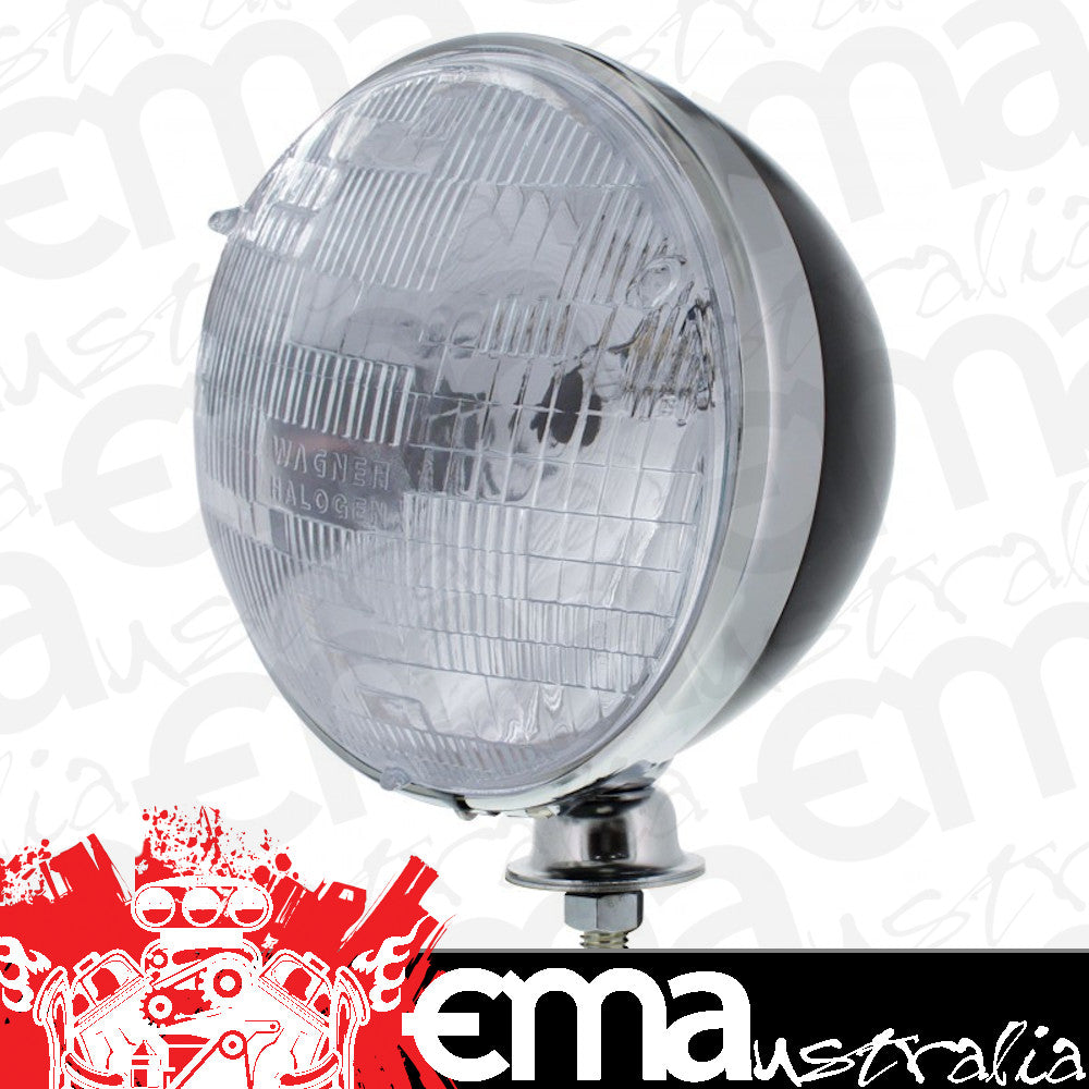 - Gloss Black Powder Coated Headlight with Chrome Rim