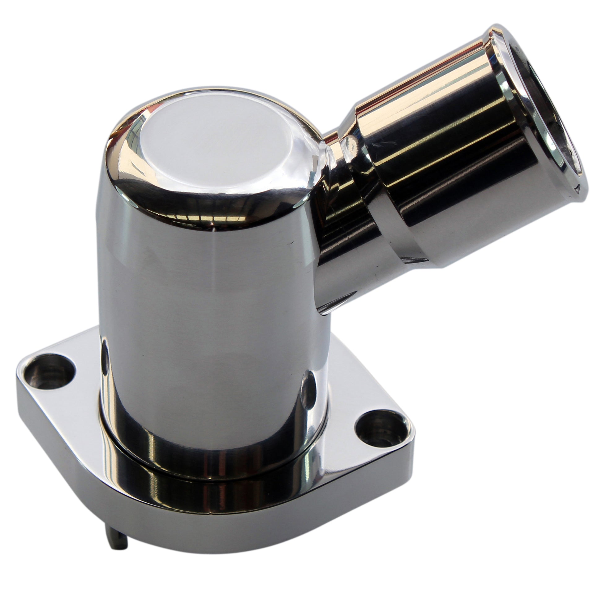 Water Neck Chevrolet LS 1997-2003 Polished Alloy 45 Degree Swivel Style with O-Ring and Bolts. This is the early version where the Thermostat locks into the housing. The later version has thermostat fitting into the engine.