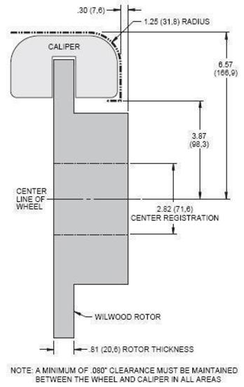 | Notes | Kit will fit some 14.00 in. wheels, minimum 6.57 in. distance required from centerline of axle to top of caliper. |